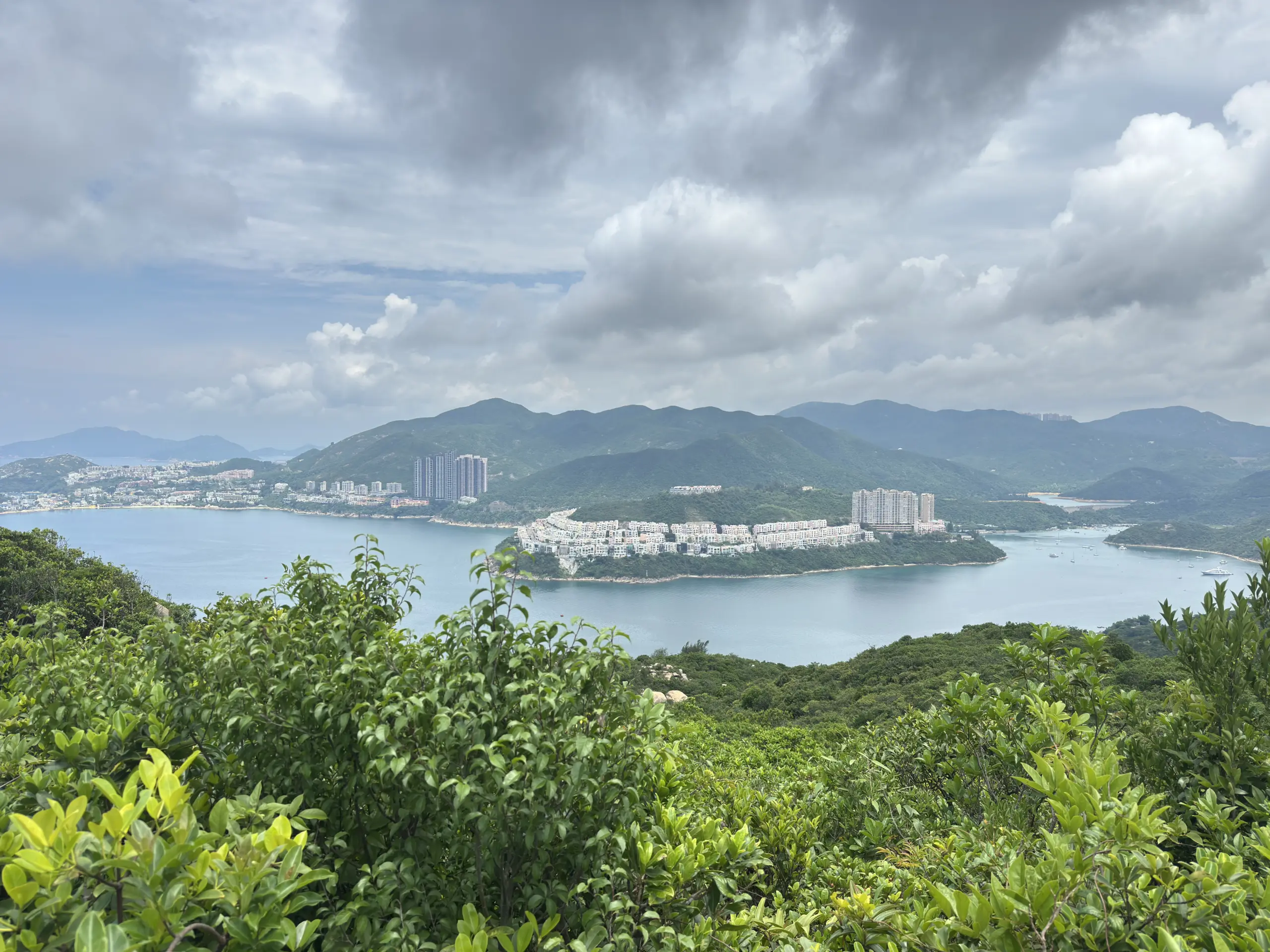隨後輕降山徑至分岔路,右踏(左可往龍脊的初段)平緩的林蔭山徑,再右接水泥路(左可走至石澳道),此段途中遠望柴灣市區。